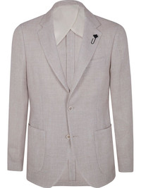 single-breasted blazer Highlights - Grey - Front button fastening - Two patch pockets - Long sleeves Made in Italy Composition Linen/Flax 100% SIZE & FIT FittingInformation Designed for a slim fit, offering a comfortable fit that sits just away from the body The internal shoulder pads offer a structured shape Made from a midweight non-stretch fabric