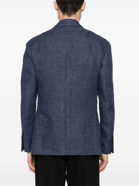 single-breasted blazer Highlights - Navy blue - Linen-wool blend - Basket weave - Notched lapels - Long sleeves - Buttoned cuffs - Chest welt pocket - Two side patch pockets - English rear vents - Internal logo tag - Curved hem - Front button fastening Made in Italy Composition Outer: Linen/Flax 60%, Wool 40% Lining: Viscose 52%, Cupro 48% SIZE & FIT Model measurements Height 6 ft 1 in(1.86 m) Bust/Chest 37.4 in(95 cm) Hips 36.22 in(92 cm) Waist 29.52 in(75 cm) Measurement CHEST 34.64 in(88 cm) SLEEVE LENGTH 28.74 in(73 cm) LENGTH 28.74 in(73 cm) Shoulder Width 17.32 in(44 cm) FittingInformation Designed for a slim fit, offering a comfortable fit that sits just away from the body The vented hem offers movement at the rear Made from a midweight non-stretch fabric This piece fits true to size – take your usual size Washing instructions Dry Clean Only