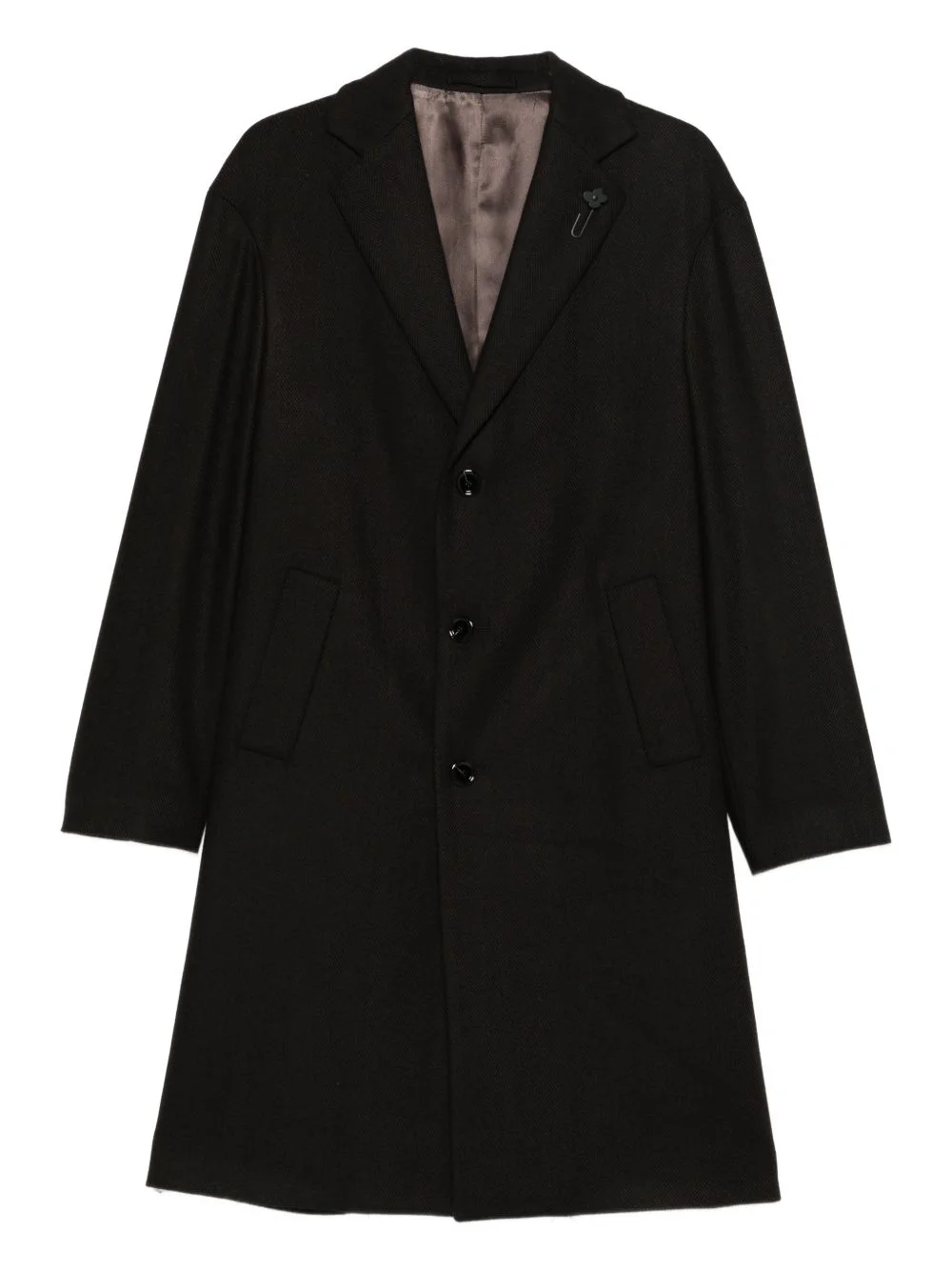 single-breasted coat Highlights - Black - Button fastening - Pin detail - Notched lapels - Long sleeves Made in Italy Composition Outer: Wool 95%, Cashmere 5% Lining: Acetate 65%, Viscose 35% SIZE & FIT Model measurements Height 6 ft 1 in(1.86 m) Bust/Chest 35.43 in(90 cm) Hips 35.03 in(89 cm) Waist 29.13 in(74 cm) Washing instructions Dry Clean Only