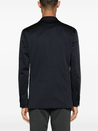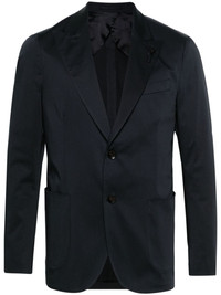 single-breasted cotton blazer Highlights - Navy blue - Stretch-cotton - Peak lapels - Jetted chest pocket - Two front patch pockets - Long sleeves - Buttoned cuffs - Straight hem Made in Italy Composition Outer: Cotton 97%, Elastane 3% Lining: Viscose 52%, Cupro 48% SIZE & FIT Model measurements Height 6 ft 2 in(1.87 m) Bust/Chest 38.18 in(97 cm) Hips 36.61 in(93 cm) Waist 29.13 in(74 cm) FittingInformation Designed for a slim fit, offering a comfortable fit that sits just away from the body The vented hem offers movement at the rear Made from a midweight stretch fabric, this piece offers elasticity and flexibility when worn This piece fits true to size – take your usual size