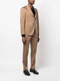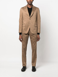 single-breasted two-piece suit brown stretch-cotton peak lapels chest welt pocket button fastening two front patch pockets long sleeves buttoned cuffs mid-rise button fly fastening belt loops two side slit pockets rear welt pocket straight leg Made in Italy Composition Cotton 97% Outer: Elastane 3% Lining: Polyester 100% SIZE & FIT Model measurements Height 6 ft 2 in(1.88 m) Bust/Chest 36.61 in(93 cm) Hips 35.82 in(91 cm) Waist 27.95 in(71 cm) FittingInformation This piece fits true to size. We recommend you get your regular size Cut for a slim fit Made with a mid-weight fabric Washing instructions Dry Clean Only