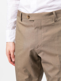 single-breasted two-piece suit ecru cotton Jacket: tonal stitching brooch detail notched lapels front button fastening slit pocket at the chest two front patch pockets buttoned-cuff sleeves English rear vents Trousers: pressed crease belt loops concealed fly and button fastening two diagonal pockets to the sides two rear button-fastening pockets Made in Italy Composition Outer: Cotton 100% Lining: Polyester 100% SIZE & FIT Model measurements Height 6 ft 3 in(1.91 m) Bust/Chest 37 in(94 cm) Hips 37.79 in(96 cm) Waist 28.34 in(72 cm) FittingInformation This piece fits true to size. We recommend you get your regular size Cut for a slim fit Made with a mid-weight non-stretch fabric