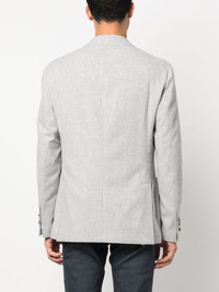 single-breasted wool-blend blazer Highlights - Heather grey - Wool-cashmere blend - Notched lapels - Matte floral brooch detail - Tonal stitching - Front button fastening - Long sleeves - Buttoned cuffs - Chest welt pocket - Two front patch pockets - English rear vents - Two internal welt pockets - Internal logo tag - Partial lining Made in Italy Composition Outer: Wool 90%, Cashmere 10% Lining: Polyester 100% SIZE & FIT Model measurements Height 6 ft 1 in(1.85 m) Bust/Chest 35.82 in(91 cm) Hips 37.79 in(96 cm) Waist 29.13 in(74 cm) FittingInformation Designed for a slim fit, offering a comfortable fit that sits just away from the body The vented hem offers movement at the rear Made from a midweight non-stretch fabric This piece fits true to size – take your usual size