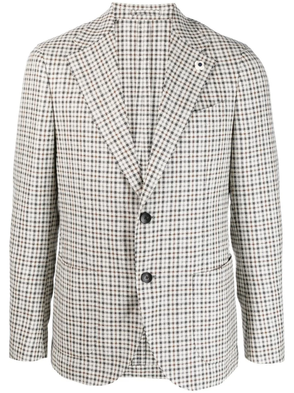 single breasted wool-blend blazer Highlights - Brown/white - Wool-silk blend - Check pattern - Logo charm - Notched lapels - Long sleeves - Buttoned cuffs - Chest welt pocket - Two front patch pockets - English rear vents Made in Italy Composition Polyester 100%, Wool 73%, Silk 27% SIZE & FIT Model measurements Height 6 ft 1 in(1.85 m) Bust/Chest 35.43 in(90 cm) Hips 35.82 in(91 cm) Waist 27.55 in(70 cm) FittingInformation Designed for a slim fit, offering a comfortable fit that sits just away from the body The vented hem offers movement at the rear Made from a midweight non-stretch fabric This piece fits true to size – take your usual size