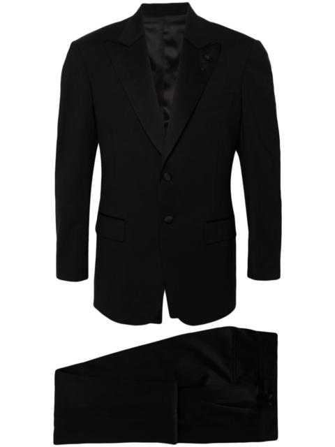 single-breasted wool-blend suit Highlights - Navy blue - Stretch-wool - Tailored design Made in Italy Composition Outer: Wool 97%, Elastane 3% Lining: Viscose 52%, Cupro 48%