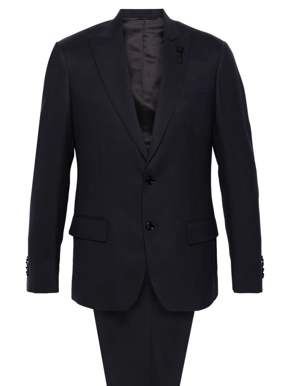 single-breasted wool suit Highlights - Navy blue - Wool - Textured finish Made in Italy Composition Lining: Viscose 52%, Cupro 48% Outer: Wool 100% SIZE & FIT Model measurements Height 6 ft 1 in(1.86 m) Bust/Chest 37.4 in(95 cm) Hips 36.22 in(92 cm) Waist 29.52 in(75 cm) FittingInformation Tailored for a slim fit, offering a comfortable fit that sits just away from the body The unfinished hems allow for the length to be altered Made from a midweight non-stretch fabric This piece fits true to size – take your usual size