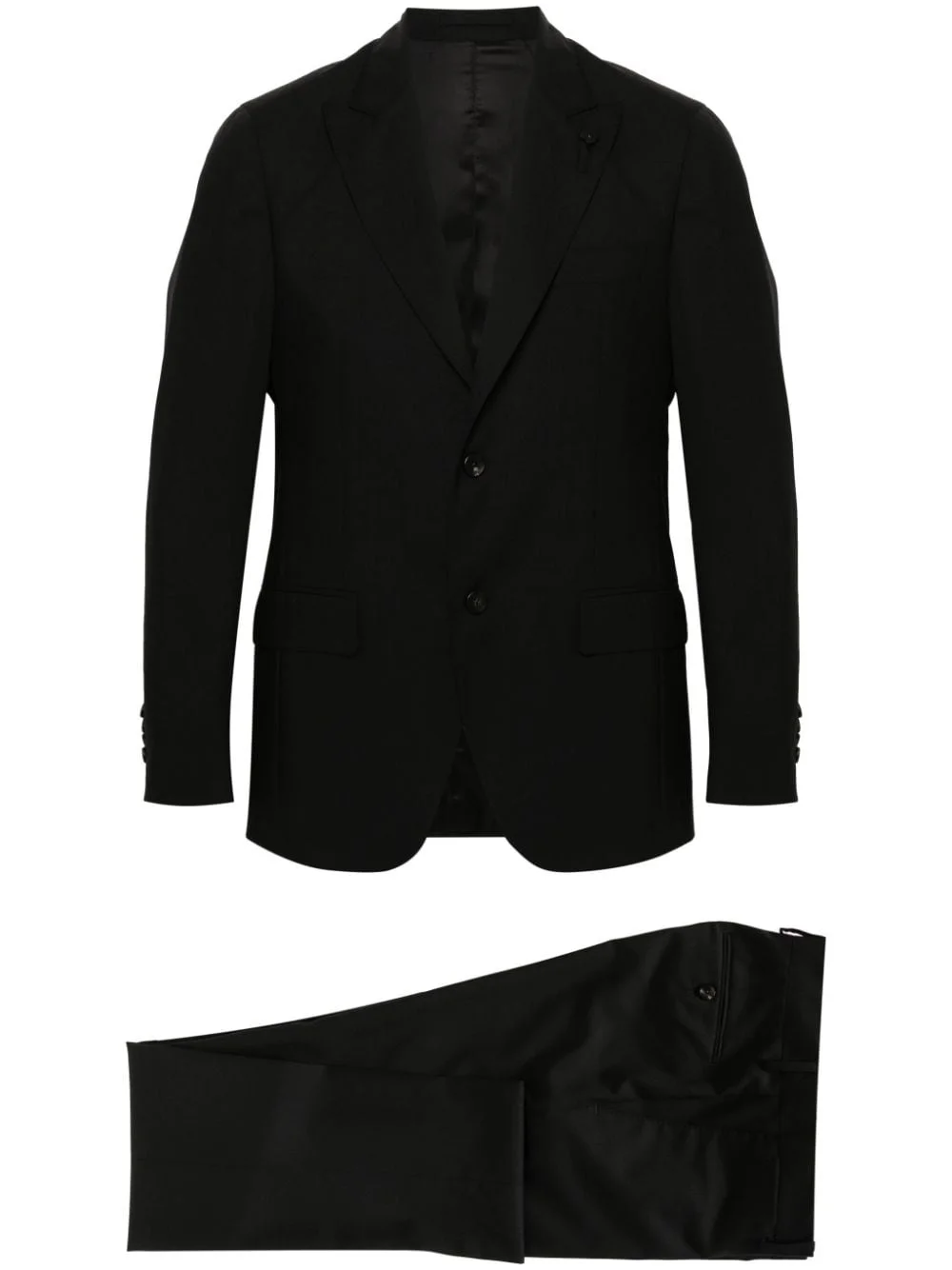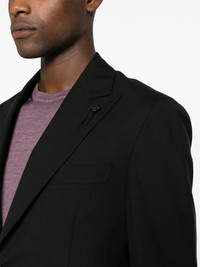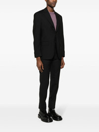 single-breasted wool suit Highlights - Black - Wool - Blazer: - Peak lapels - Logo charm - Chest welt pocket - Shoulder pads - Long sleeves - Buttoned cuffs - Two front flap pockets - English rear vents - Internal jetted pockets - Full lining - Front button fastening - Trousers: - Belt loops - Two diagonal pockets to the sides - Pressed crease - Straight leg - Two rear button-fastening jetted pockets - Front button and zip fastening Made in Italy Composition Outer: Wool 100% Lining: Viscose 52%, Cupro 48% SIZE & FIT Model measurements Height 6 ft 2 in(1.88 m) Bust/Chest 36.61 in(93 cm) Hips 35.82 in(91 cm) Waist 27.95 in(71 cm) FittingInformation Tailored for a slim fit, offering a comfortable fit that sits just away from the body The unfinished hems allow for the length to be altered Made from a midweight non-stretch fabric This piece fits true to size – take your usual size Washing instructions Read Manufacturer Guidelines
