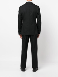single-breasted wool suit black wool signature lapel flower notched lapels button fastening chest patch pocket two front patch pockets long sleeves buttoned cuffs English rear vents belt loops two side inset pockets rear button-fastening jetted pocket straight leg Made in Italy Composition Outer: Virgin Wool 100% Lining: Polyester 65%, Viscose 52%, Cupro 48%, Cotton 35% SIZE & FIT Model measurements Height 6 ft 1 in(1.86 m) Bust/Chest 37.4 in(95 cm) Hips 34.64 in(88 cm) Waist 29.13 in(74 cm) FittingInformation This piece fits true to size. We recommend you get your regular size Cut for a slim fit Made with a mid-weight non-stretch fabric