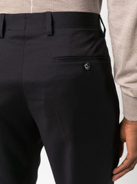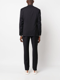 single-breasted wool suit set Highlights - Navy blue - Wool - Blazer: - Brooch detail - Wide notch lapels - Front button fastening - Long sleeves - Jetted chest pocket - Two front flap pockets - Straight hem - Trousers: - Belt loops - Off-centre front button fastening - Pleat detailing - Mid-rise - Tapered leg - Two side inset pockets - Two rear button-fastening jetted pockets Made in Italy Composition Outer: Wool 100% Lining: Viscose 52%, Cupro 48% SIZE & FIT Model measurements Height 6 ft 2 in(1.88 m) Bust/Chest 36.61 in(93 cm) Hips 35.82 in(91 cm) Waist 27.95 in(71 cm) FittingInformation Tailored for a slim fit, offering a comfortable fit that sits just away from the body The unfinished hems allow for the length to be altered Made from a midweight non-stretch fabric This piece fits true to size – take your usual size