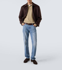 A family-owned business with a legacy of Italian-made tailoring, Lardini unceasingly strives to bring together tradition and innovation. These slim denim jeans feature five pockets and a washed-off effect, perfect for everyday wear. Product Details - Material: 99% cotton, 1% elastane - Care instructions: machine wash at 40 degrees - Made in Italy - Designer color name: Light Wash Blue - Item color: blue - Lining: 60% polyester, 40% cotton - Closure: concealed button placket - Pockets: five pockets - Belt loops - Single pleat - Item number: P01066660 Size & Fit - True to size - Slightly stretchy fabric - Slim-leg - Low-rise - Height of model is 188cm-74" and wears a size 32