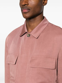spread-collar shirt jacket Highlights - Dark pink - Linen blend - Spread collar - Long sleeves with buttoned cuffs - Two front flap pockets - Two side slit pockets - Full lining - Internal slip pocket - Internal logo tag - Straight hem - Front button fastening Made in Italy Composition Outer: Linen/Flax 61%, Lyocell 39% Lining: Cotton 100% SIZE & FIT Model measurements Height 6 ft 2 in(1.89 m) Bust/Chest 39.76 in(101 cm) Hips 37.4 in(95 cm) Waist 29.92 in(76 cm) FittingInformation Designed for a regular fit, allowing for a comfortably loose fit throughout the body Made from a midweight non-stretch fabric This piece fits true to size – take your usual size Washing instructions Dry Clean Only
