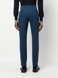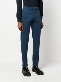 straight-leg tailored trousers blue stretch-cotton belt loops front button and zip fastening two side inset pockets two rear button-fastening jetted pockets straight leg Made in Italy Composition Cotton 98%, Spandex/Elastane 2% SIZE & FIT Model measurements Height 6 ft 2 in(1.88 m) Bust/Chest 36.61 in(93 cm) Hips 35.82 in(91 cm) Waist 27.95 in(71 cm) FittingInformation This piece fits true to size. We recommend you get your regular size Cut for a slim fit Made with a mid-weight stretch fabric