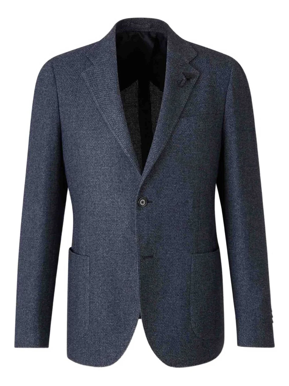 textured single-breasted jacket Highlights - Blue - Micro-check pattern - Four-button cuffs - Patch pocket - Single-breasted closure - Notched lapel Made in Italy Composition Fabric 100% Washing instructions Read Manufacturer Guidelines