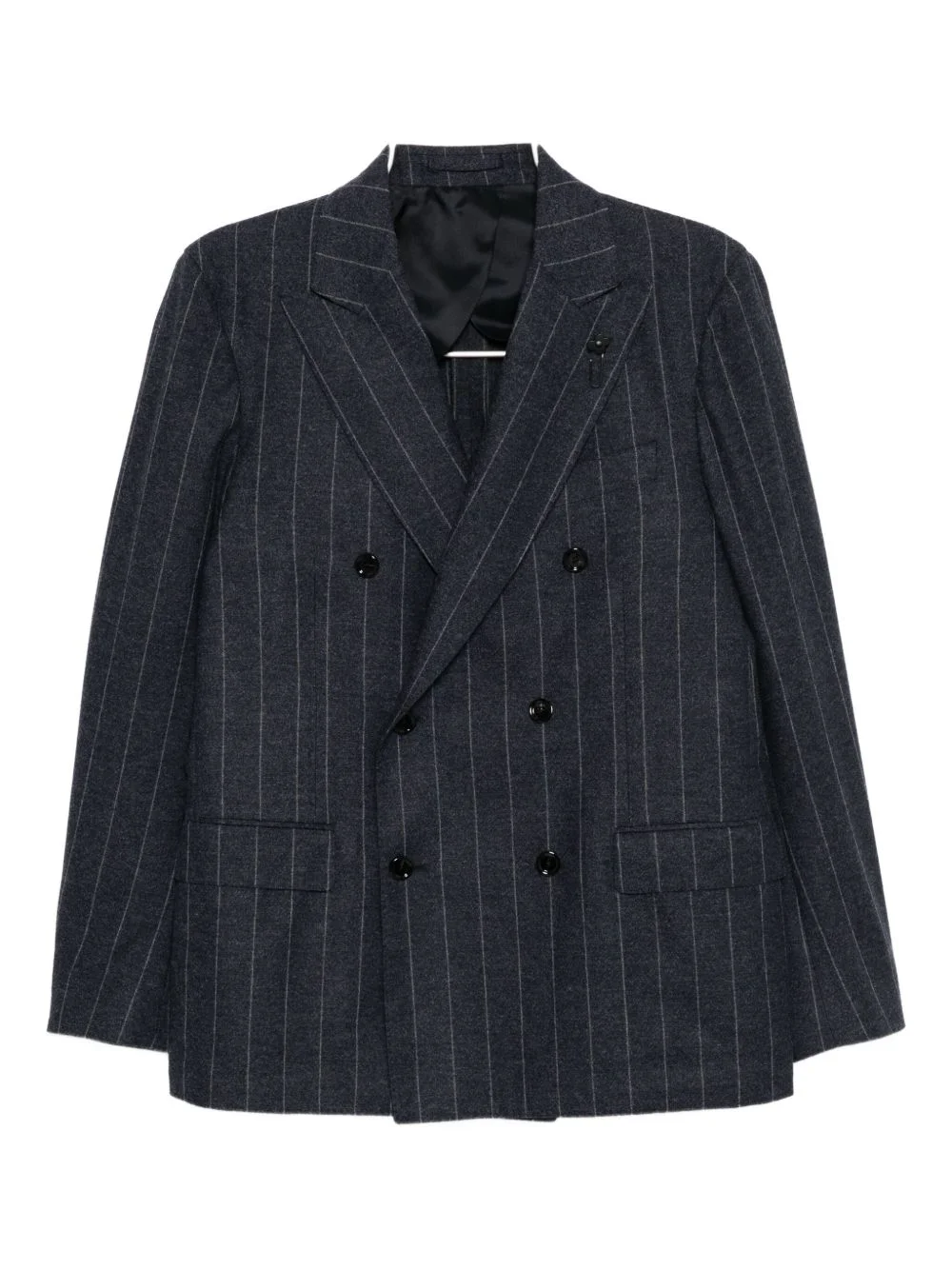 striped double-breasted suit Highlights - Top - Navy blue - Front button fastening - Chest welt pocket - Two side flap pockets - Buttoned-cuff sleeves - Bottom - Navy blue - Concealed front button, hook and zip fastening - Two side slash pockets - Two rear jetted pockets Made in Italy Composition Virgin Wool 85%, Cashmere 15% SIZE & FIT Model measurements Height 6 ft 3 in(1.9 m) Bust/Chest 19.29 in(49 cm) Hips 38.58 in(98 cm) Waist 32.28 in(82 cm) FittingInformation Tailored for a regular fit, offering a comfortable loose fit throughout the body The unfinished hems allow for the length to be altered Made from a midweight non-stretch fabric Washing instructions Dry Clean Only