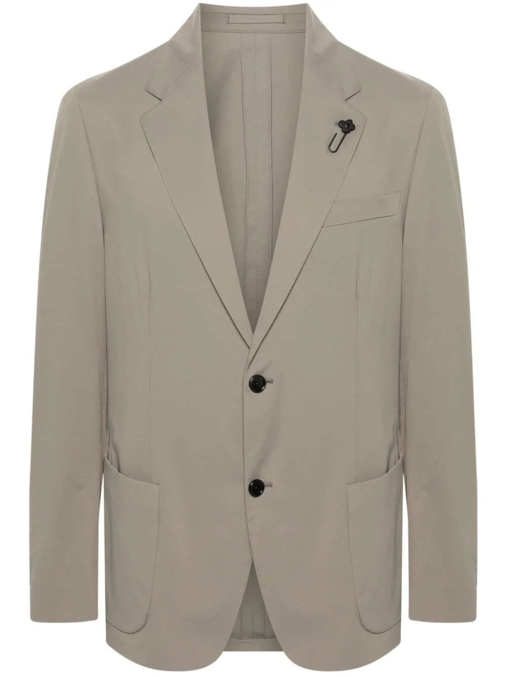 taffeta single-breasted blazer Highlights - Taupe grey - Taffeta - Notched lapels - Brooch detail - Chest welt pocket - Long sleeves - Buttoned cuffs - Two front patch pockets - English rear vents - Internal patch pocket - Unlined - Front button fastening Made in Italy Composition Outer: Polyamide 92%, Elastane 8% Lining: Viscose 52%, Cupro 48% SIZE & FIT Model measurements Height 6 ft 2 in(1.87 m) Bust/Chest 38.18 in(97 cm) Hips 36.61 in(93 cm) Waist 29.13 in(74 cm) FittingInformation Designed for a slim fit, offering a comfortable fit that sits just away from the body The vented hem offers movement at the rear Made from a midweight stretch fabric, this piece offers elasticity and flexibility when worn This piece fits true to size – take your usual size