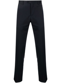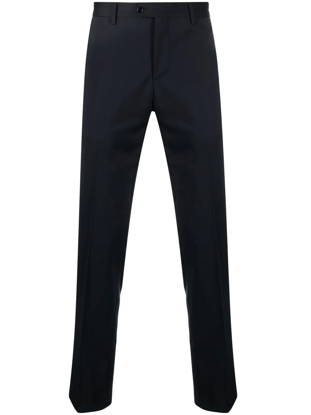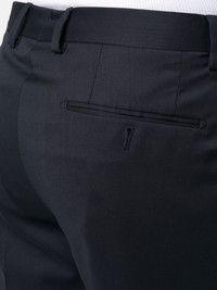 tailored stretch-wool trousers navy blue stretch-wool tailored cut pressed crease concealed fly and button fastening belt loops two diagonal pockets to the sides two rear button-fastening jetted pockets Made in Italy Composition Outer: Wool 98%, Spandex/Elastane 2% Lining: Viscose 100%, Polyester 65%, Cotton 35% SIZE & FIT Model measurements Height 6 ft 2 in(1.87 m) Bust/Chest 36.41 in(92.5 cm) Hips 37 in(94 cm) Waist 29.52 in(75 cm) FittingInformation This piece fits true to size. We recommend you get your regular size Cut for a slim fit Made with a mid-weight fabric