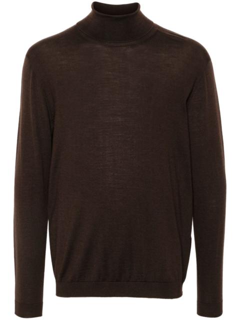 turtleneck wool sweater Highlights Made in Italy Composition Wool 75%, Silk 20%, Cashmere 5% SIZE & FIT FittingInformation Designed for a relaxed fit, this piece allows for comfort and movement when worn The ribbed hem offers a close, comfortable fit Made with a midweight knit, this piece offers some stretch