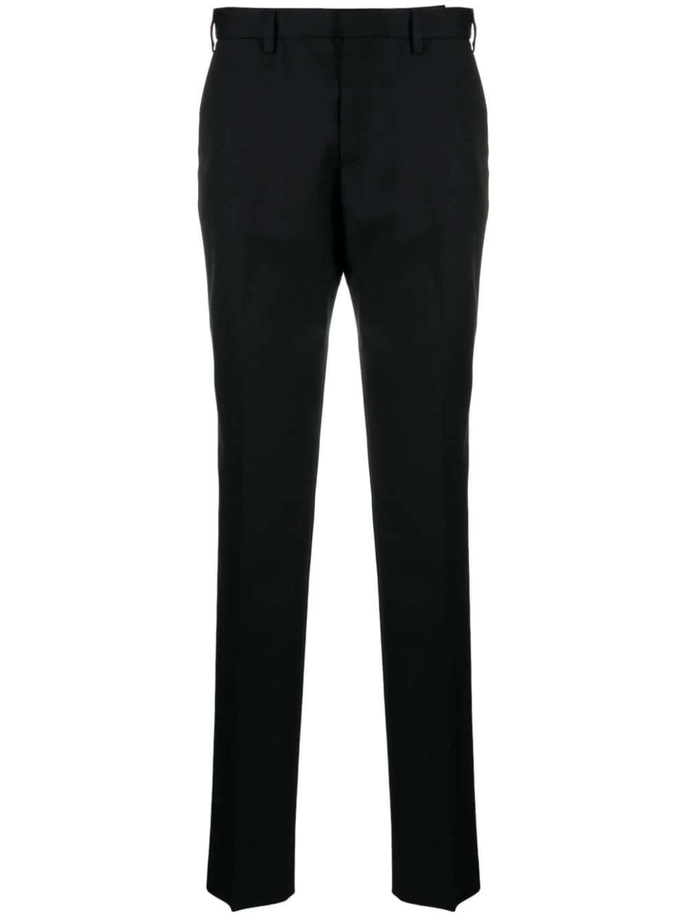 twill-weave wool tailored trousers Highlights - Black - Wool - Twill weave - Pressed crease - Belted waist tabs - Belt loops - Concealed fly and button fastening - Two side inset pockets - Two rear flap pockets - Tailored cut Made in Italy Composition Outer: Wool 100% Lining: Viscose 100% SIZE & FIT Model measurements Height 6 ft 2 in(1.87 m) Bust/Chest 38.18 in(97 cm) Hips 36.61 in(93 cm) Waist 29.13 in(74 cm) FittingInformation Designed for a slim fit, offering a comfortable fit that sits just away from the leg The adjustable tabs allow for fitted preferences Made from a midweight non-stretch fabric This piece fits true to size – take your usual size