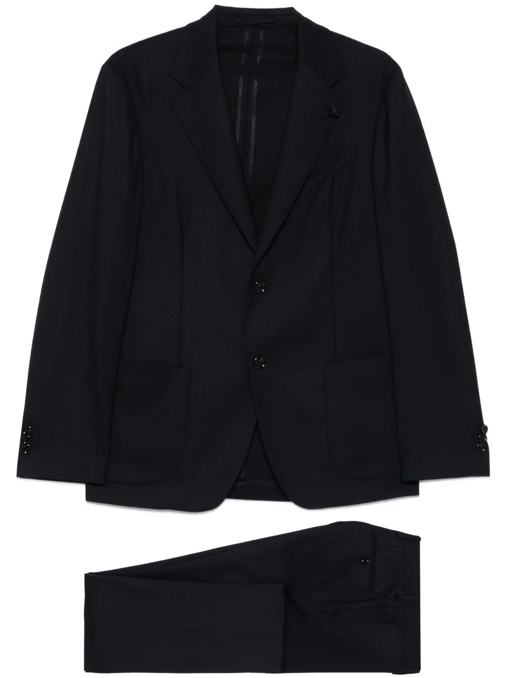 two-button pocket suit Highlights - Blue - Two-button fastening - Patch pockets - Straight hem - Notched lapels - Long sleeves Made in Italy Composition Lining: Viscose 52%, Cupro 48% Outer: Cotton 100%, Virgin Wool 98%, Elastane 2% SIZE & FIT Model measurements Height 6 ft 1 in(1.85 m) Bust/Chest 35.82 in(91 cm) Hips 37.79 in(96 cm) Waist 29.13 in(74 cm) Washing instructions Dry Clean Only