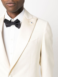 two-piece single-breasted suit Highlights - Off-white - Wool-silk blend Made in Italy Composition Wool 86%, Silk 14% SIZE & FIT Model measurements Height 6 ft 2 in(1.88 m) Bust/Chest 36.61 in(93 cm) Hips 35.82 in(91 cm) Waist 27.95 in(71 cm) FittingInformation Tailored for a slim fit, offering a comfortable fit that sits just away from the body The vented hem offers movement at the rear Made from a midweight non-stretch fabric This piece fits true to size – take your usual size