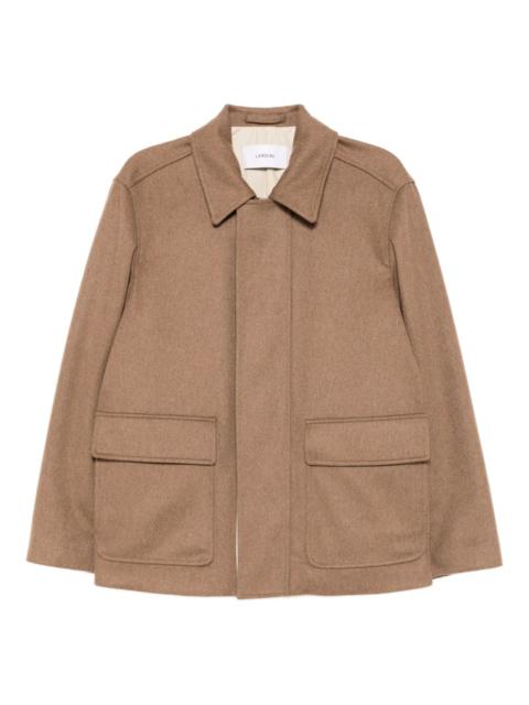 button wool jacket Highlights - Blue - Button closure - Point collar - Front flap pockets - Long sleeves Made in Italy Composition Wool 100% Washing instructions Read Manufacturer Guidelines