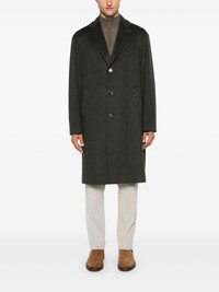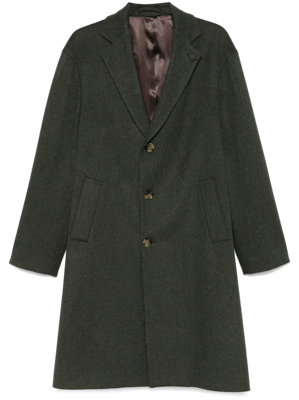 virgin wool coat Highlights - Dark green - Virgin wool - Brushed finish - Front button fastening - Notched lapels - Long sleeves - Two side welt pockets - Rear slit - Full lining - Straight hem - Mid-length Made in Italy Composition Outer: Virgin Wool 100% Lining: Acetate 65%, Viscose 35% SIZE & FIT Model measurements Height 6 ft 2 in(1.87 m) Bust/Chest 37.79 in(96 cm) Hips 37.79 in(96 cm) Waist 30.31 in(77 cm) FittingInformation Designed to be unstructured, offering a loose fit throughout The vented hem offers movement at the rear Made from a midweight non-stretch fabric