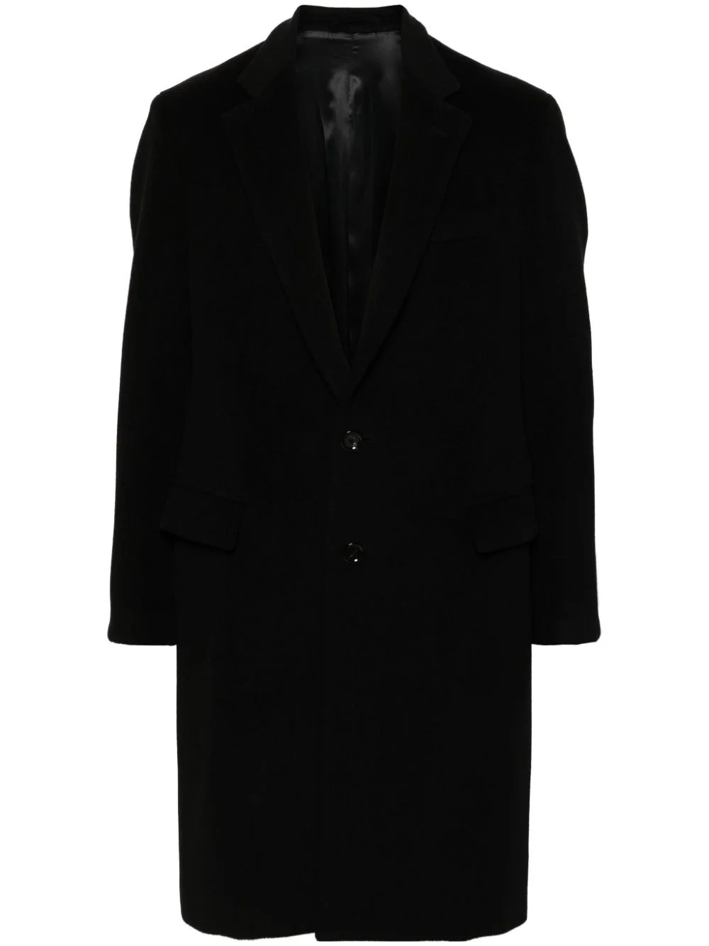 virgin wool coat Highlights - Black - Virgin wool - Front button fastening - Notched lapels - Shoulder pads - Long sleeves - Buttoned cuffs - Chest welt pocket - Dart detailing - Two side flap pockets - American rear vent - Satin lining - Straight hem Made in Italy Composition Outer: Virgin Wool 100% Lining: Acetate 65%, Viscose 35% SIZE & FIT Model measurements Height 6 ft 2 in(1.87 m) Bust/Chest 38.18 in(97 cm) Hips 36.61 in(93 cm) Waist 29.13 in(74 cm) FittingInformation Designed to be unstructured, offering a loose fit throughout The vented hem offers movement at the rear Made from a midweight non-stretch fabric