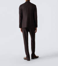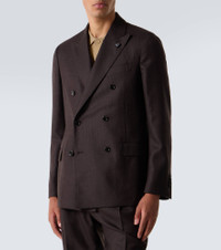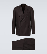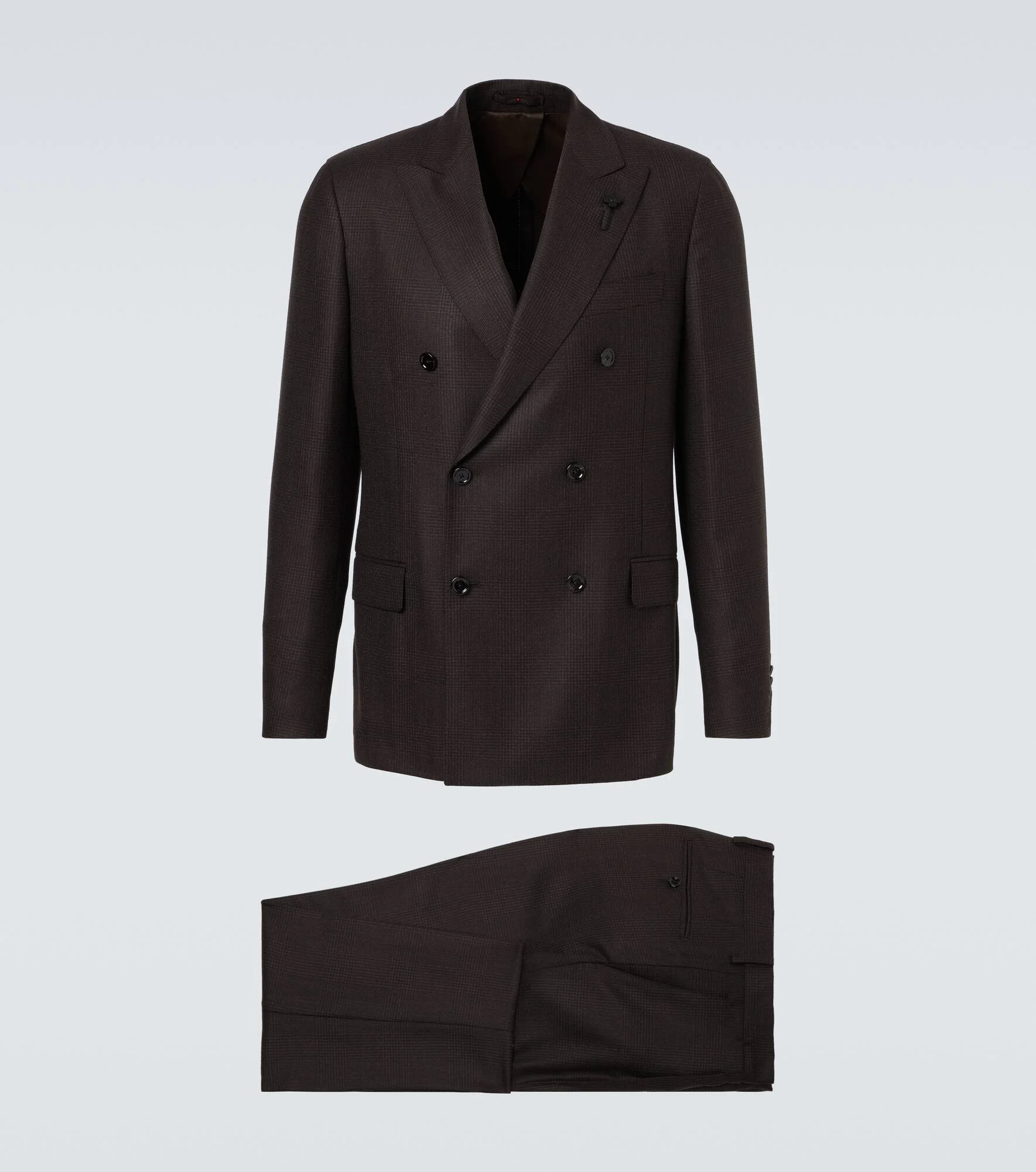 Elegance and simplicity lie at the heart of Lardini's tailoring, which is distinguished by rich fabrics and impeccable detailing. Crafted from pure virgin wool, this suit features a double-breasted style with peak lapels. Product Details - Material: 100% virgin wool - Care instructions: dry clean - Made in Italy - Designer color name: 450NE - Item color: brown - Lining: 52% viscose, 48% cupro - Material II: 100% virgin wool - Lining II: 100% cotton - Peak lapel - Pockets: breast pocket, flap pockets, internal pockets, side slit pockets, back pockets - Cuff: four buttons - Closure: double-breasted (six buttons), zipper fly, button fastening - Belt loops - Two-piece set - Item number: P01066631 Size & Fit - True to size - Regular fit - Non-stretchy fabric - Falls below the hip - Slim-leg - Unhemmed for tailoring - Height of model is 188cm-74" and wears a size IT 50
