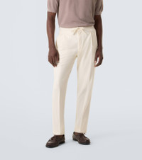 A family-owned business with a legacy of Italian-made tailoring, Lardini unceasingly strives to bring together tradition and innovation. This pair of tapered pants has center pleats down each leg and is crafted from virgin wool. Product Details - Material: 100% virgin wool - Care instructions: dry clean - Made in Italy - Designer color name: White - Item color: white - Lining: 100% viscose - Item number: P01136411 Size & Fit - True to size - Elasticated waist - Adjustable at the waist - Non-stretchy fabric - Slim-leg - The model in the picture is 185cm-6'1" and wearing a size 50