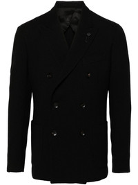 brooch-detail blazer Highlights - Black - Wool blend - Interwoven design - Brooch detail - Double-breasted button fastening - Peak lapels - Shoulder pads - Long sleeves with faux-buttoned cuffs - Chest welt pocket - Dart detailing - Two front patch pockets - English rear vents - Internal pocket - Partial lining - Straight hem Made in Italy Composition Wool 57%, Viscose 52%, Cupro 48%, Cotton 42%, Spandex/Elastane 1% SIZE & FIT Model measurements Height 6 ft 2 in(1.87 m) Bust/Chest 38.18 in(97 cm) Hips 36.61 in(93 cm) Waist 29.13 in(74 cm) FittingInformation Designed for a regular fit, allowing for a comfortably loose fit throughout the body The vented hem offers movement at the rear Made from a midweight stretch fabric, this piece offers elasticity and flexibility when worn This piece fits true to size – take your usual size