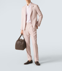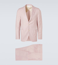 A family-owned business with a legacy of Italian-made tailoring, Lardini unceasingly strives to bring together tradition and innovation. Elegant and simple, this single-breasted suit is made from a blend of wool, silk, and linen. Product Details - Material: 49% wool, 38% silk, 13% linen - Care instructions: dry clean - Made in Italy - Color: pink - Designer color name: Pink - Item color: pink - Lining: 52% viscose, 48% cupro - Two-piece set - Closure: single-breasted (two buttons) - Notched lapel - Pockets: patch pockets, angled chest pocket, internal pockets - Partially lined - Cuff: four buttons - Vent: double - Item number: P01136378 Size & Fit - True to size - Slim fit - Non-stretchy fabric - Falls below the hip - Slim-leg - Unhemmed for tailoring - Height of model is 189cm-74.5" and wears a size 50