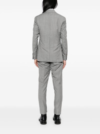 wool suit Highlights - Cool grey - Double-breasted button fastening - Stripe print - Concealed front button, hook and zip fastening - Belt loops Made in Italy Composition Wool 100% SIZE & FIT Model measurements Height 6 ft 2 in(1.88 m) Bust/Chest 34.25 in(87 cm) Hips 34.64 in(88 cm) Waist 26.77 in(68 cm) FittingInformation Tailored for a regular fit, offering a comfortable loose fit throughout the body The unfinished hems allow for the length to be altered Made from a midweight non-stretch fabric