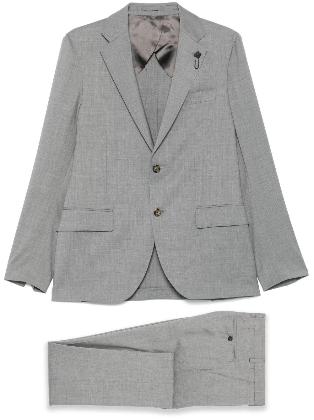 wool suit Highlights - Light grey - Front button fastening - Concealed front button, hook and zip fastening - Belt loops - Chest welt pocket Made in Italy Composition Lining: Viscose 52%, Cupro 48% Outer: Virgin Wool 100% SIZE & FIT Model measurements Height 6 ft 2 in(1.89 m) Bust/Chest 35.03 in(89 cm) Hips 38.18 in(97 cm) Waist 29.92 in(76 cm) FittingInformation Tailored for a slim fit, offering a comfortable fit that sits just away from the body The unfinished hems allow for the length to be altered Made from a midweight non-stretch fabric