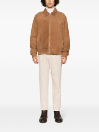 zip-up suede bomber jacket