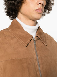 zip-up suede bomber jacket Highlights - Camel brown - Calf suede - Classic collar - Front two-way zip fastening - Long sleeves - Two side slit pockets - Ribbed cuffs and hem - Straight hem Made in Italy Composition Lining: Polyester 100%, Acetate 70%, Cupro 30% Outer: Calf Suede 100% SIZE & FIT Model measurements Height 6 ft 2 in(1.87 m) Bust/Chest 36.61 in(93 cm) Hips 35.03 in(89 cm) Waist 27.95 in(71 cm) FittingInformation Designed for a relaxed fit, this piece allows for comfort and movement when worn Firm leather offering little flexibility to maintain its durability and sturdiness This piece fits true to size – take your usual size Washing instructions Specialist Cleaning