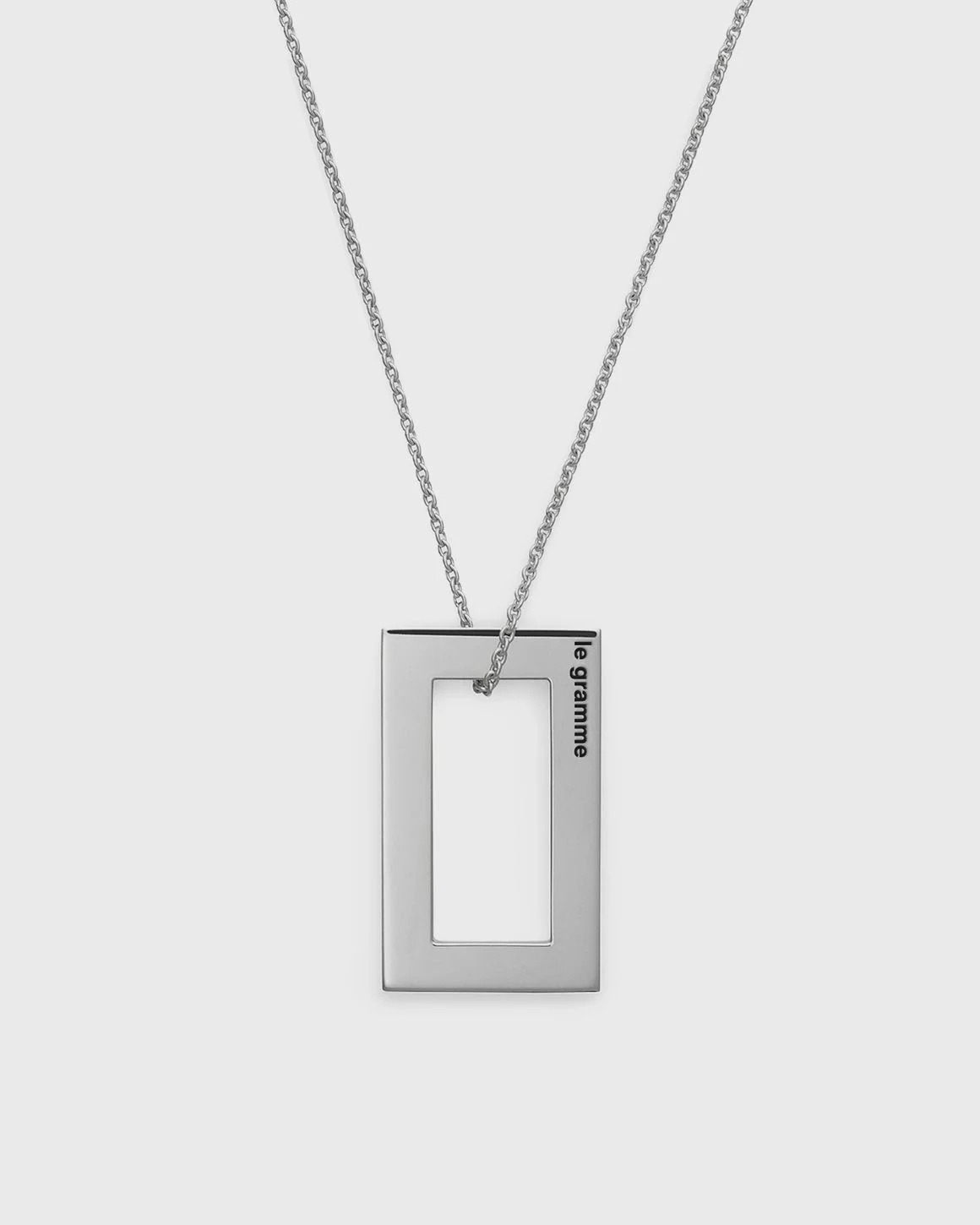 The rectangle necklace 3.4g features a minimal, graphic, and timeless design.All of le gramme’s jewelry is crafted in France using recycled precious materials. - 925 sterling silver - Made in France - Hallmarked - Weight: 3.4g - Width: 14.85mm - Thickness: 1.6mm -Lenght: 24.7mm - Chain length: 55cm-60cm – adjustable For the right size, go one size up from your wrist circumference measurement. For example: If your wrist measures 16.5 cm, your size is 17 cm. This item is partly made of certified, recycled and sustainable materials, reducing the global amount of waste and conserving primary raw materials. Discover a wide range of sustainable items now at BSTN! Article Number: LG_CARPO081_3.4-SILVER Gender: Men Color: SILVER Material: 100% sterling silver