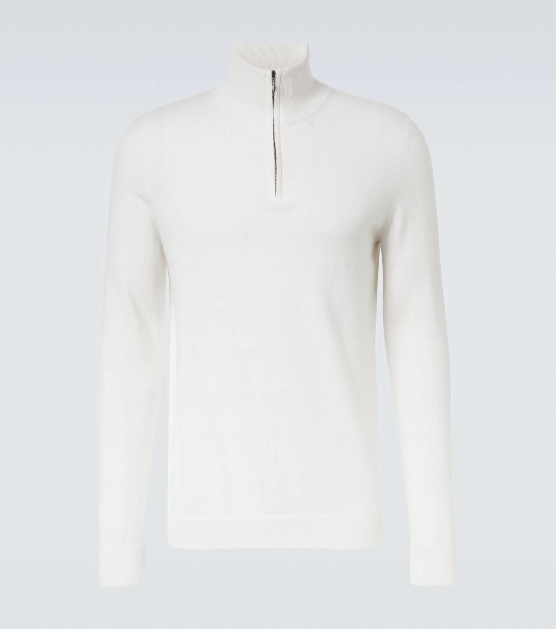 Founded in 1918, Le Kasha boasts a rich French heritage while drawing inspiration from all corners of the world. The Dared half-zip sweater is expertly crafted from pure cashmere into a classic silhouette. Product Details - Material: 100% cashmere - Care instructions: hand wash - Made in Inner Mongolia - Designer color name: White - Item color: white - Closure: partially zipped front - Cuff: ribbed - Hem: ribbed - Item number: P01068610 Size & Fit - True to size - Straight fit - Stretchy fabric - Falls to the hip - Height of model is 188cm-74" and wears a size L