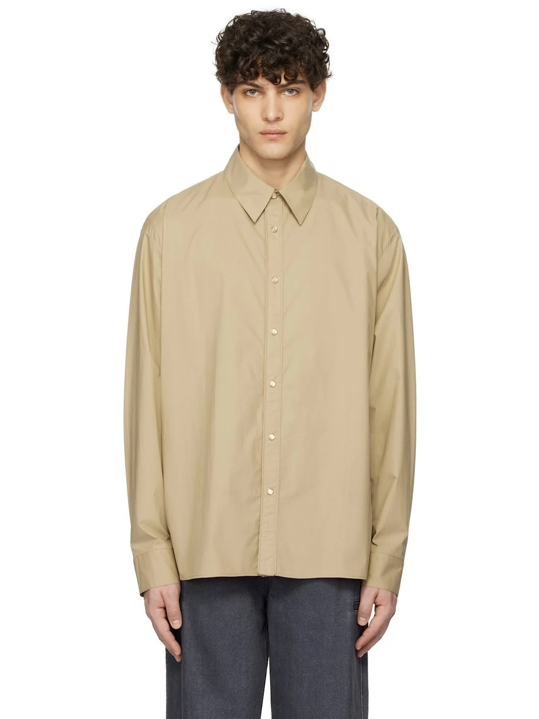 Cotton poplin shirt. · Spread collar · Press-stud closure · Shirttail hem · Adjustable single-press-stud barrel cuffs · Logo hardware at back collar · Box pleat at back yoke Supplier color: Beige 100% cotton. Made in South Korea 251495M192011