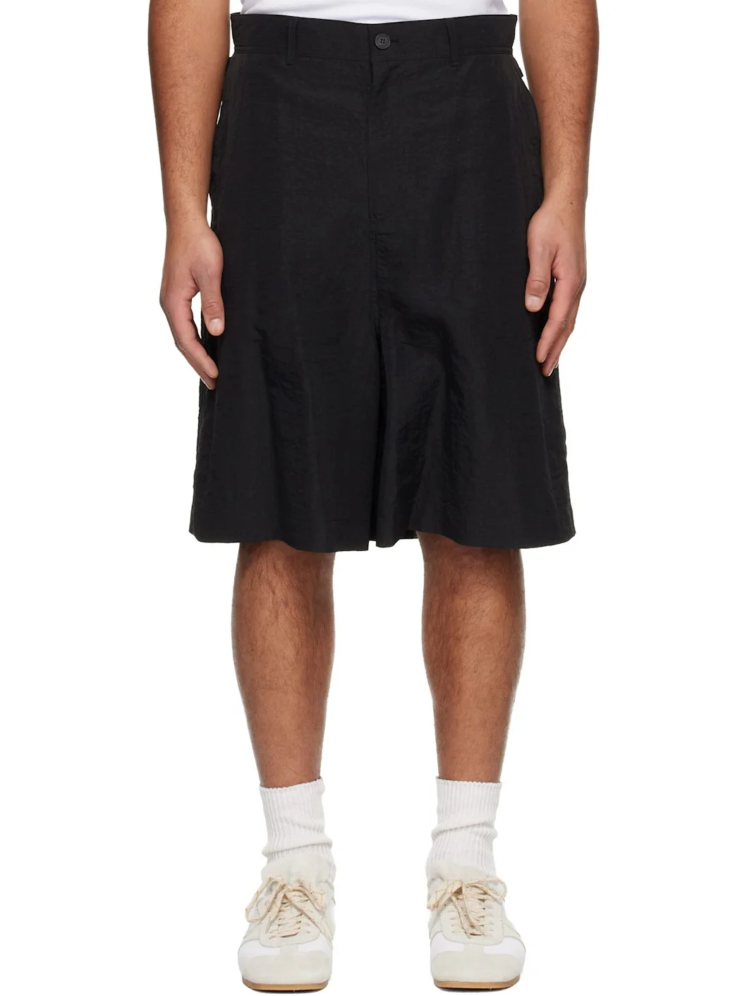 Crinkled nylon taffeta shorts. · Belt loops · Four-pocket styling · Zip fly · Cinch strap at back waistband Supplier color: Black Body: 100% nylon. Trim: 80% polyester, 20% cotton. Made in South Korea 261495M193002
