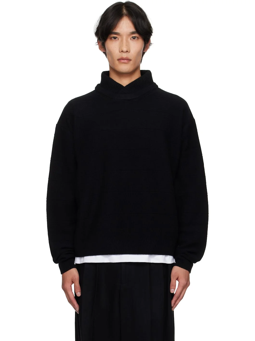 Knit wool- and cashmere-blend sweater. · Rib-knit crewneck, hem, and cuffs · Layered collar · Dropped shoulders · Logo hardware at back collar Supplier color: Black 65% wool, 25% nylon, 10% cashmere. Made in South Korea 252495M201002