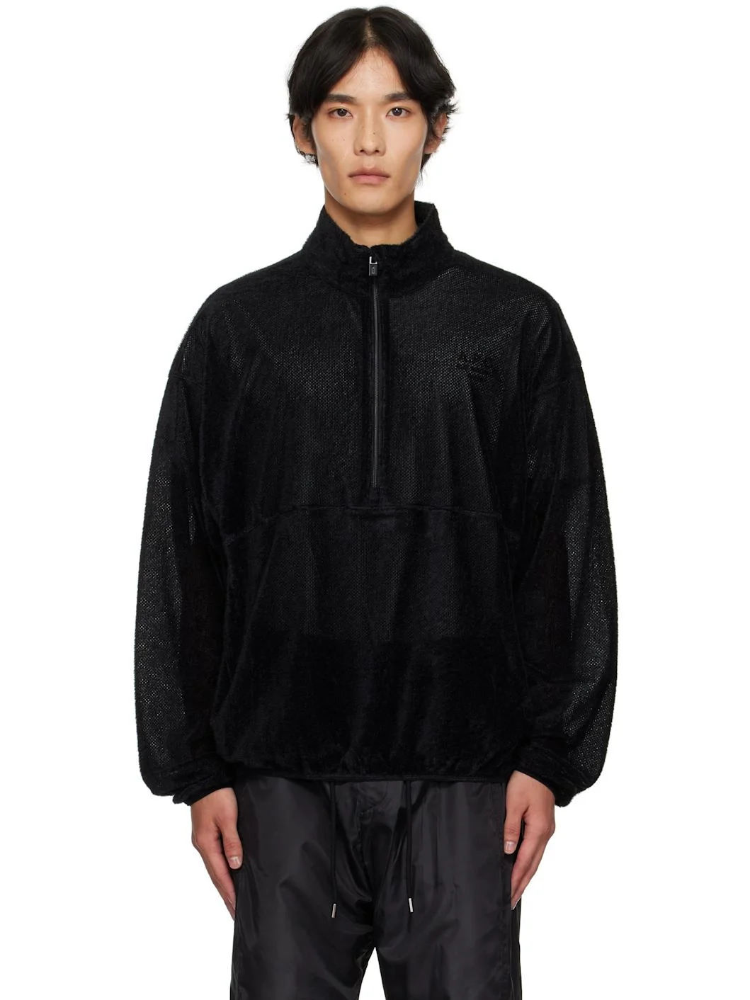 Chenille anorak. · Stand collar · Half-zip closure · Elasticized hem and cuffs · Dropped shoulders · Zip pocket at back Supplier color: Black 100% polyester. Made in South Korea 252495M202001