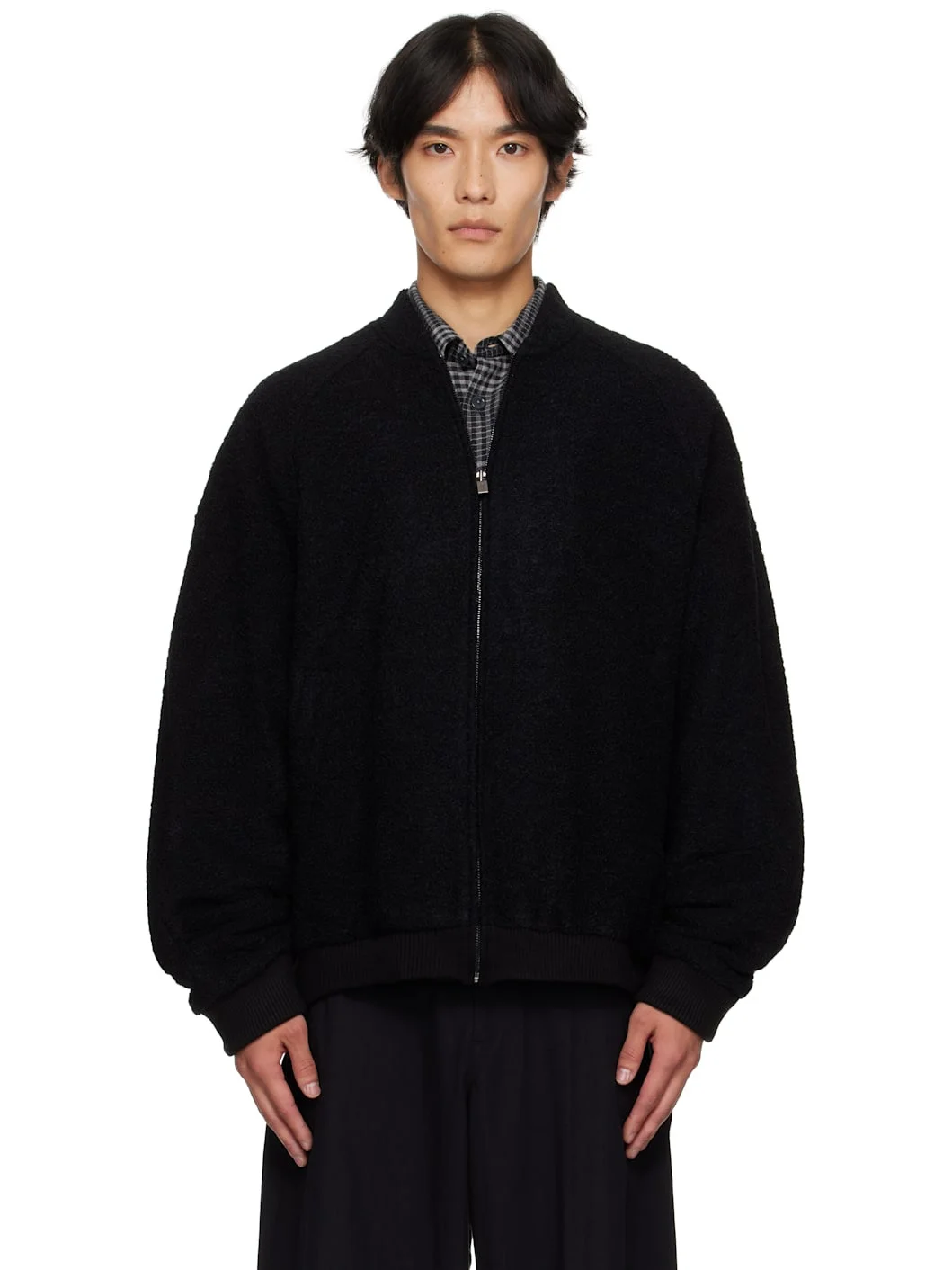Boucle-knit wool- and alpaca-blend jacket. · Crewneck · Zip closure · Welt pockets at waist · Rib-knit hem and cuffs · Raglan sleeves · Logo hardware at back collar · Welt pocket at interior · Full satin lining Supplier color: Black Body: 65% wool, 25% nylon, 10% alpaca. Lining: 100% polyester. Pocket lining: 65% polyester, 35% cotton. Made in South Korea 252495M180000