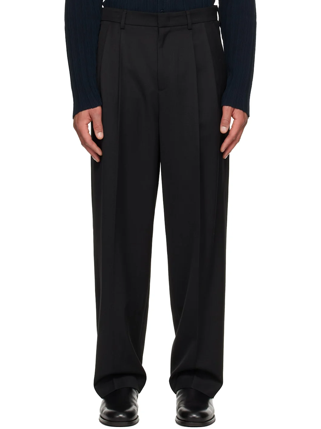 Wool-blend twill trousers. · Belt loops · Four-pocket styling · Zip fly · Pleats at front · Creased legs Supplier color: Black Body: 50% wool, 50% polyester. Trim: 80% polyester, 20% cotton. Made in South Korea 261495M191001