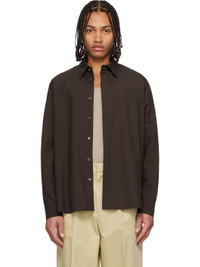 Wool-blend delaine shirt. · Spread collar · Button closure · Shirttail hem · Buttoned barrel cuffs · Logo hardware at back collar · Box pleat at back yoke Supplier color: Brown 50% wool, 50% polyester. Made in South Korea 261495M192009