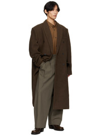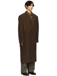 Wool- and cashmere-blend melton coat. · Peaked lapel · Double-breasted button closure · Welt pocket at chest · Flap pockets at waist · Buttoned surgeon's cuffs · Logo hardware at back collar · Central vent at back hem · Welt pockets at interior · Full satin twill lining Supplier color: Brown Body: 87% wool, 10% nylon, 3% cashmere. Lining: 100% polyester. Pocket lining: 65% polyester, 35% cotton. Made in South Korea 252495M176001