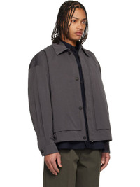 Cotton- and nylon-blend twill jacket. · Spread collar · Zip closure with button placket · Tucks and welt pockets at front · Bungee-style drawstring at hem · Buttoned barrel cuffs · Logo hardware at back collar · Welt pocket at interior Supplier color: Grey Body: 66% cotton, 34% nylon. Trim: 80% polyester, 20% cotton. Made in South Korea 261495M180000