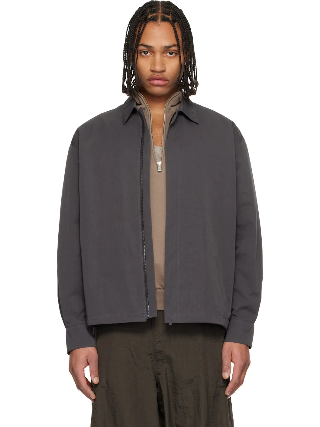 Cotton- and nylon-blend twill shirt. · Spread collar · Zip closure · Bungee-style drawstring at hem · Buttoned barrel cuffs · Logo hardware at back collar Supplier color: Grey 66% cotton, 34% nylon. Made in South Korea 261495M192010