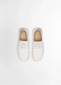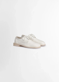 These Anatomic Derbies debut this season in the everyday LEMAIRE vestiaire. This classic unlined style is crafted in very soft and supple buffalo grained leather with a subtle shine. They boast a tonal square stacked heel and an outsole developped and handpainted especially for this timeless and unisex design. DETAILS - Soft grained leather - Contrasted stacked heel - Handpainted sole and heel Made in Portugal Style: FO0214 LL0043 FABRICS & CARE Main Material: 100% Buffalo Main Lining: 100% Cow Do not wash Do not bleach Do not tumble dry Do not iron Professional leather clean only If exposed to water or high humidity, dry your shoes well with an absorbent cloth and let them air dry before storing them. Smooth leather: Use a soft cloth and apply a measured amount of uncolour milk or cream. Suede leather: Brush lightly with a sponge or special suede cloth. Discover the traceability
