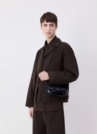 The Belly bag epitomizes LEMAIRE’s savoir-faire when it comes to leather accessories. This new addition to the vestiaire is moulded with no metal structure and crafted in vegetable tanned leather - LWG Silver certified. Two contrasting lambskins form the lining and the outside of the bag respectively, in a subtle dialogue of colour and texture. With a shiny finish, the unisex style can hold small essentials such as a phone, keys or even a pocketbook. Worn either over the shoulder or cross-body, the Belly is closed with an oversized round silver buckle, adding a touch of shine to the silhouette. DETAILS - This bag can be worn on the shoulder or cross-body - Height of the strap: 46cm / 18in - Length: 24cm / 9,5in - Width: 8 cm / 3in - Depth: 13,5cm / 5,3in - Lambskin leather lining - Inside card slot - Can contain a large phone - Silver buckle Made in Spain Style: BG0113 LL071 FABRICS & CARE Main Fabric: 100% Cow Main Lining: 100% Lamb Do not wash Do not bleach Do not tumble dry Do not iron Professional leather clean only