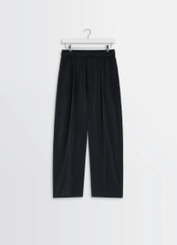 Inspired by Lemaire's taste for the link between comfort and elegance, these pants feature a relaxed fit with an elasticated waistband and removable belt. They are crafted in a dry silk blend, a classic Lemaire fabric with a soft hand and a slightly crinkled texture. DETAILS Belted relaxed pants in dry silk Relaxed cut Elasticated waistband with belt loops Adjustable and removable belt with metal buckle Closure with hook and hidden buttons Front pleats Welted side pockets Welted button pocket at the back Made in Slovakia Style : PA1196 LF1308 The model is 187 cm tall and is wearing a size 48 (M). FABRICS & CARE Main Material: 76% Silk 24% Polyamide